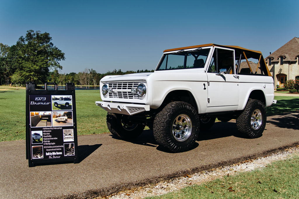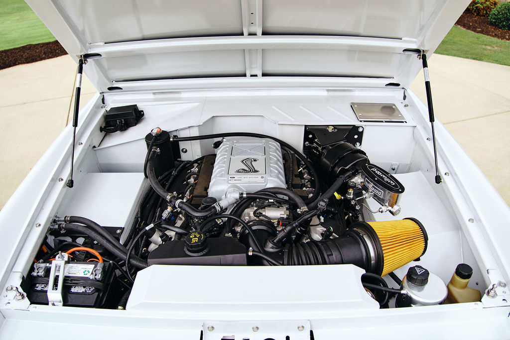 This one-of-a-kind 1973 Bronco was designed in the spirit of the 2018-2022 GT500 Mustang. It was an exciting time at Mr. Bronco once the opportunity to build such a vehicle was secured. The first piece of the puzzle was installing a 5.2-liter supercharged crate motor, which arrived just four days after the build contract was signed in 2023.